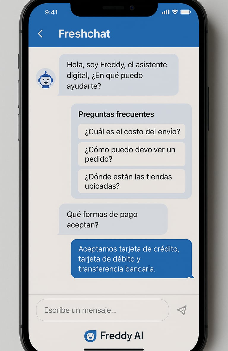 Freshchat + Freddy AI para crear bots conversacionales que: