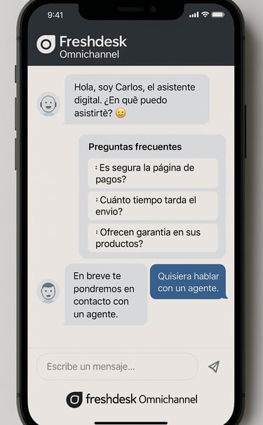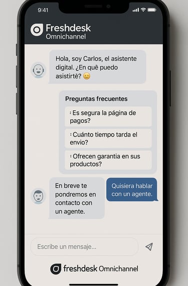 En Projfy360 te ayudamos a definir qué debe responder el bot, cuándo escalar a humano y cómo conectar todo con Freshdesk y Freshsales para que tu equipo reciba leads “calentitos” y priorizados. Si quieres ver ejemplos de flujos conversacionales para tu especialidad, agenda un primer contacto y te mostramos maquetas adaptadas a tu realidad